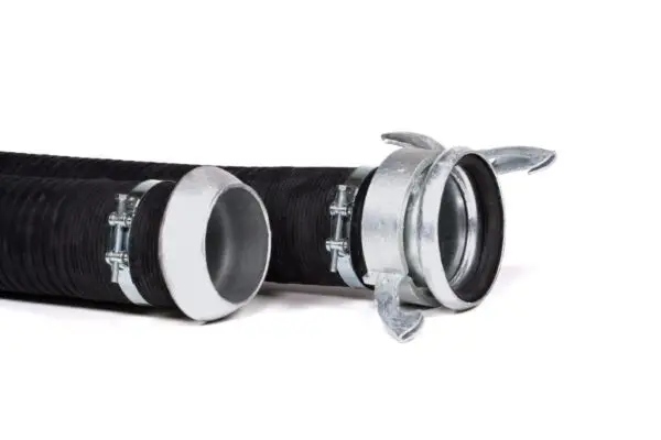 Voorgemonteerde rubber koppelslangset met een lengte van 4 meter voor water en mest. De flexibele rubber slang is aan 1 zijde voorzien van een vaderdeel en aan de andere zijde van een moederdeel. De koppeldelen zijn met verzinkte klembanden aan de lichtgewicht rubber slang bevestigd.