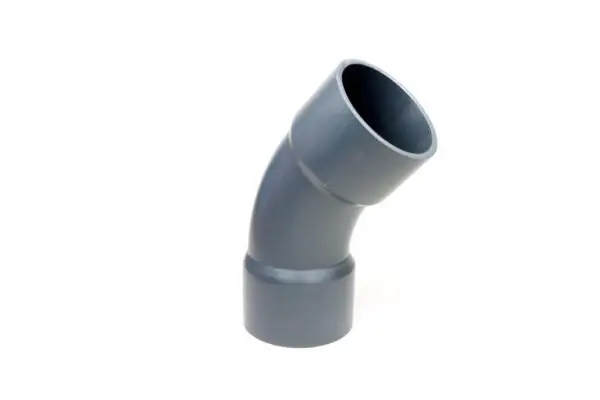 Druk PVC bocht van 45 graden welke op een PVC buis van 40 mm past. De bocht is aan beide zijden voorzien van een lijmmof. De 45 graden bocht voldoet aan drukklasse PN10.