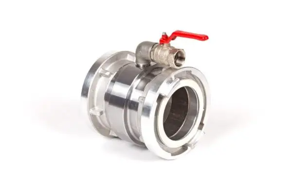 Dit ontluchtingsstuk kan geplaatst worden aan het einde van de transportslang. Na het stopzetten van de pomp kan hiermee simpel en snel de druk van de slang worden gehaald om dede slang te ontkoppelen of te repareren. Dit ontluchtingsstuk wordt compleet geleverd (ongemonteerd) met twee Storz koppelingen N148 met een 5″ buitendraad, een RVS knie en een kogelkraan. Dit ontluchtingsstuk is niet geschikt om mee te slepen.
