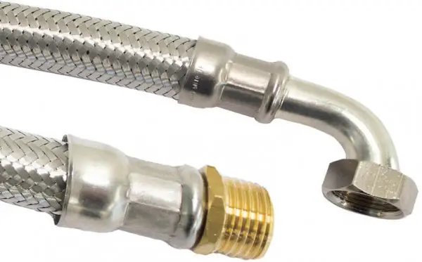 Flexibele aansluitslang – rvs gevlochten – binnendraad x buitendraad – 1” x 1” met knie – DN25 – lengte 80cm Laatste Versie