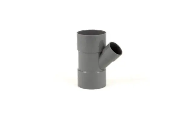 Met dit PVC verloop T-stuk van 45 graden kunt u op een PVC buis van 75 mm eenvoudig een schuine afsplitsing naar PVC 40 mm maken. Het Y-stuk is aan alle zijden voorzien van een lijmmof. Het T-stuk 45 graden is voorzien van een KOMO keur.