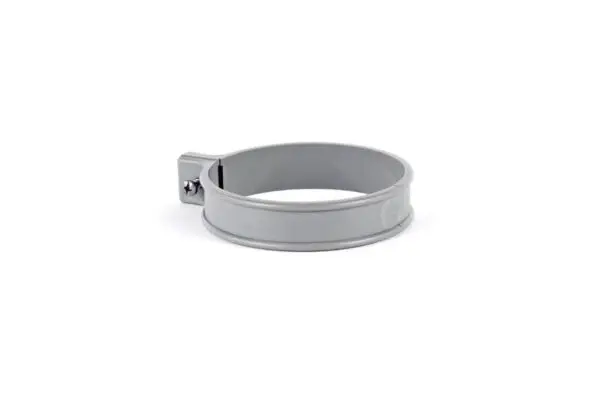 PVC ophangbeugel die om een HWA buis van 80 mm past. De beugel is voorzien van een schroef. De schroef kan gebruikt worden voor het monteren op een inslagpen of montage oog.