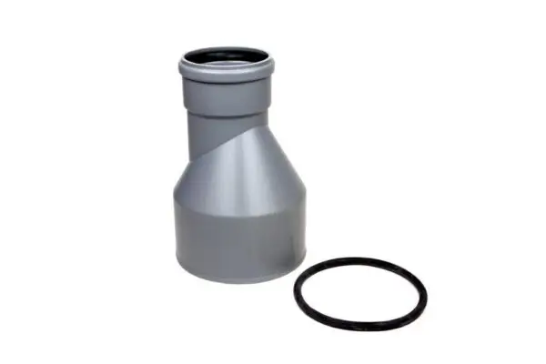 Verloop van PVC 110 mm naar gietijzer 157 mm. Om de juiste afdichting van het spiedeel te krijgen dient de meegeleverde tokrolring gebruikt te worden. Het verloop is excentrisch. Dit wil zeggen dat de aansluiting voor PVC uit het midden is geplaatst.