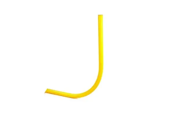 Losse PVC invoerbocht van 63 mm voor gas. De gele invoerbocht heeft een lengte van 4250 mm en een radius van 500 mm.