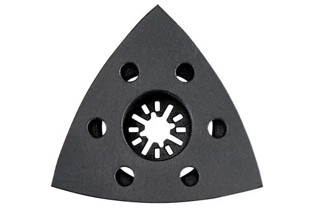 Geperforeerde schuurzool met klithechting. Snel, eenvoudig wisselen van de schuurbladen Voor multitool MT 18 LTX. Maat van hoek tot hoek: 93 mm