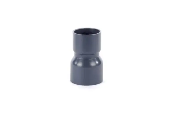 Druk PVC verloopmof van 200 mm naar 125 mm. Het verloop is aan één zijde voorzien van een 200 mm lijmmof en aan de andere zijde van een lijmmof van 125 mm. De verloopmof voldoet aan drukklasse PN6.