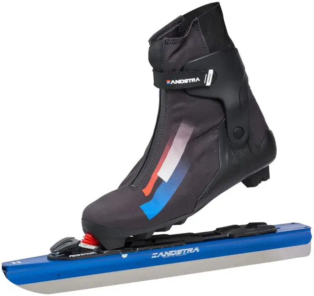 Deze Cross Country schoen is door Zandstra specifiek ontworpen vanuit het oogpunt van schaatsen. Door de speciaal ontworpen cuff, een extra stijve zool en een anatomische binnenzool, geeft dit extra stabiliteit en comfort tijdens het schaatsen. Verder heeft de schoen een laag gewicht, zorgt de Free Heel Counter voor optimale steun en pasvorm van de hiel en zijn de kunststof gedeeltes versterkt met glasvezel. Tenslotte is de beschermende buitenkant lichtgewicht, elastisch, ademend en waterdicht en voorkomt het 45 graden vetersysteem rotatie van de voet in de schoen. Schaats De Zandstra Nordic Race 4163 wordt geleverd met het Nordic onderstel. Deze schaats bestaat uit een aluminium frame, wat deze erg licht van gewicht maakt. De binding is traploos verstelbaar. De unieke bevestiging van de binding op de schaats is gepatenteerd (Patent: 1031965). De Rottefella skate binding heeft een extra stijve flex, speciaal ontwikkeld voor het schaatsen. De torsiestijfheid in combinatie met het hoogwaardige RVS staal (60Rc) maken deze schaats ideaal voor lange tochten op het ijs, zelfs de Elfstedentocht! Geschikt voor zowel natuur- als kunstijs.